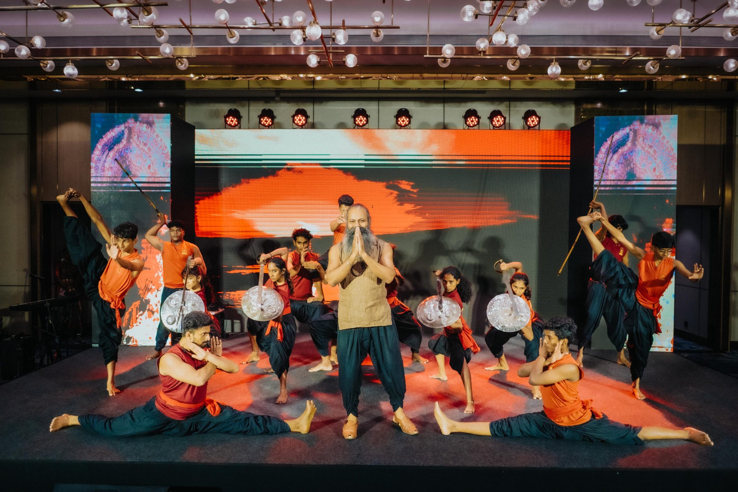 Experience the power and elegance of Agasthyam Kalaripayattu, India’s ancient martial art. Led by Gurukkal Dr. S. Mahesh, the performance features highly experienced artists — multiple-time State and National Champions, Khelo India medalists, and National Games winners.